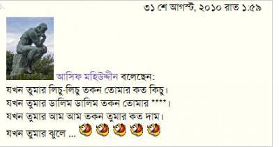 (ব্লগার ডক্টর মুশফিক ইমতিয়াক চৌধূরীকে সকলের সামনে গালিবাজ ও কুরুচিপূর্ণ প্রতিপন্ন করতে তার লেখা ও একাউন্ট চুরি করেছিল)