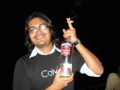 (তার হাতে থাকে বিদেশী মদের বোতল)