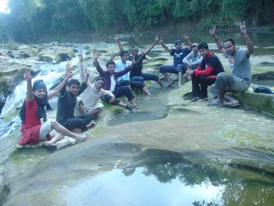 নাফাখুম এর পাশে ছিলাম প্রায় ঘন্টা ২ এর মতো, সবাই ছড়িয়ে ছিটিয়ে ছবি তুলছি, গল্প করছি হঠাৎ করে আবার ও ছলাৎ... ... ... নাফাখুম এর ঠিক মুখে জয়নুল ভাই এক পাথর থেকে আরেক পাথরে লাফ দিয়ে পার হতে নিয়েছিল, পাথরের উপরের শেওলার সাথে ভিজা পা এর স্পর্শ হবার সাথে সাথে জয়নুল ভাই এর পা গেল টেকনাফের দিকে আর মাথা তেতুলিয়ার দিকে। পাশ থেকে শুকান্ত ভাই সাথে সাথে হাত ধরে ফেলায় এ যাত্রা খরচা হবার হাত থেকে জয়নুল ভাই বেচে গেল-ও (আল্লাহ মহান) পড়ন্ত পানির সাথে জয়নুল ভাই এর এক পাটি জুতা মিলে মিশে একাকার হয়ে গেল।