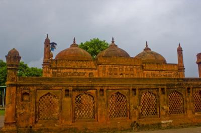 চামচিকা মসজিদ থেকে রওয়ানা দিলাম দাড়াসবাড়ি মাদ্রাসার দিকে। দাড়াসবাড়ি মাদ্রাসাটাও এক আম বাগানের মাঝে, মাদ্রাসার সামনে পৌছে পিছনে তাকিয়ে দেখি টুকি আমাদের সাথে নাই। কিছুক্ষন পর দেখা গেল আম বাগানের মালিকের কাছ থেকে দুই হাতে করে আম নিয়ে আসতেছে। বৃষ্টি-র সাথে আমাদের আবাল্য সখ্যতা, তাই আমাদের কে ছেড়ে সে বেশিক্ষন দুরে থাকতে পারলোনা। এবার আশ্রয় নিলাম বাগানের ভিতরে এক তেরপলের ছাউনির নিচে। (বাগান পাহারা দেবার জন্য প্রায় সব বাগানেই এমন দু-একটা ছাউনি থাকে)। এরি মাঝে মঞ্জু এক বটি যোগার করতে আম কাটতে লেগে পড়েছে। কোন এক জ্ঞানী লোক একবার বলছিল পুকুরের পাড়ে বৃষ্টি-র মাঝে আম বাগানে বসে রসালো আম খাবার সুযোগ পেলে সেটা কখনো হাতছাড়া করতে হয়না, আমরাও তাই হাতছাড়া করার কোন রকম চেষ্টাই করলাম না। পুকুরের অপর পাড়েই দারাসবাড়ি মসজিদ। এই মসজিদের কোন বর্ননা দেব না, শুধু এটুকু বলবো শুধুমাত্র এই মসজিদটা দেখার জন্য-ই যদি কেউ চাপাই আসে তার চাপাই আসা সার্থক।