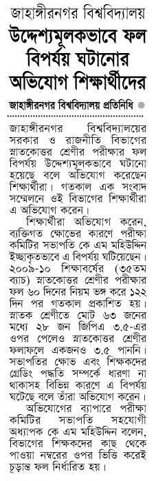 জাবির স্নাতেকোত্তর পবের ফলাফল