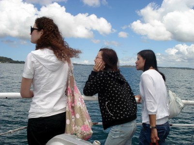 ২১. আমাদের জাহাজের ডেকে দাঁড়িয়ে তিনজন বিদেশীনি তন্ময় হয়ে সমুদ্র দেখছে।