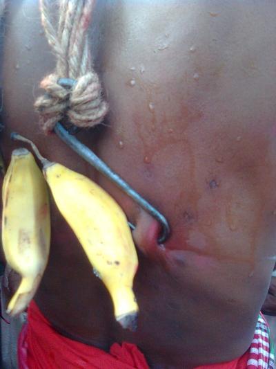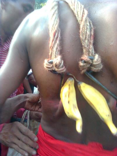 চড়কীতে ঘুরাবার সময় কলা ছিটকে পড়বে যে পাবে তার সারা বৎসরের বিপদ আপদ দূর হবে বলে বিশ্বাস করা হয় ।