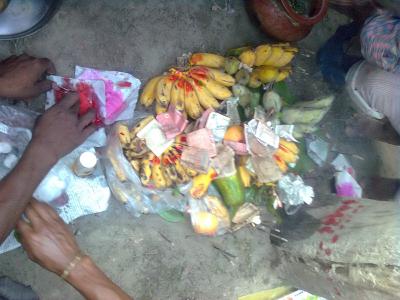 ভক্তরা পূজা দিয়েছে । পূজার অর্ঘ্য ।