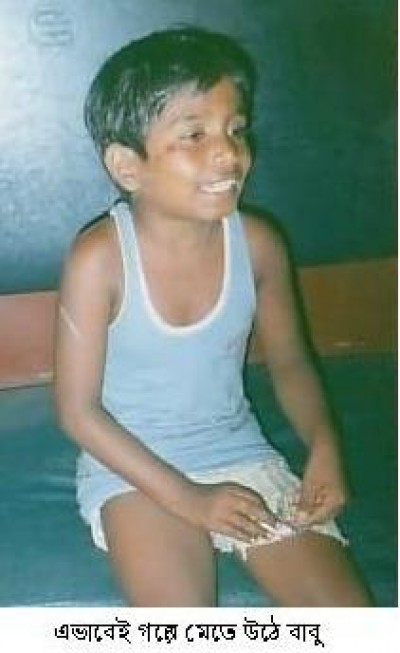 8-9 বছর বয়সের বাবু। পুরো নাম নূর মোহাম্মদ বাবু। নিস্পাপ চেহারার এই ছেলেকে আত্রাই-পার্বতীপুরগামী যে কোন ট্রেনে উঠলেই পাওয়া যাবে। মলিন প্রায় গেঞ্জি আর হাফ প্যান্ট পরে ঘুরছে বগী থেকে বগীতে। এভাবে তার সারা দিনই প্রায় কেটে যায়। আর সারা দিন সে মাত্র 20 টাকার জন্যে খাটে। এই 20 টাকায় রাতের খাওয়া হবে বাবু আর তার মা-ভাইয়ের।