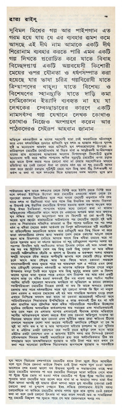 এই গল্পটা দাড়িকমা ছাড়া লিখছিলাম। এক বসায়ই লেখা। কাটাকুটি তেমন করতে হয় নাই। গল্পের নামটাও মাশাল্লা বড় রাখছিলাম। কত আগের কথা!