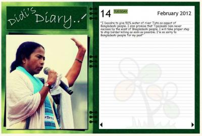 " আমি ঘোষনা দিচ্ছি যে বাংলাদেশের মানুষের প্রত্যাশা অনু্যায়ী তিস্তার ৫০ ভাগ পানি পাবে। আরো ওয়াদা করছি যে টিপাইমুখে বাধ হবে না যেহেতু বাংলাদেশের মানুষ চায় না। সীমান্তে মানুষ হত্যা বন্ধে প্রয়োজনীয় পদক্ষেপ গ্রহন করব। অতিতের জন্য আমি বাংলাদেশের মানুষের কাছে ক্ষমা প্রার্থী।"