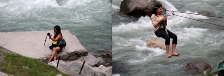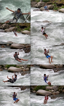 হিড়িম্বার মন্দির থেকে ফেরার পথে গাড়ি থামলো ক্লাব হাইজে। নানারকম খেলাধুলা এবং বিনোদনের ব্যাবস্থা আছে এখানে। যদিও সামনের বহমান অপরূপা বিয়াসকে ছেড়ে কে এখানে টেবিল টেনিস খেলতে আসে তা আমার বোধগম্য হলোনা। এখানে আসার মূল উদ্দেশ্য ছিল রিভারক্রসিং। কোমরে দড়ি বেঁধে বিয়াসের উপর দিয়ে পারাপার এবং শেষে বিয়াসের মাঝখানে পা ডুবানো- এ জিনিস একবার ট্রাই না করলে নিজের বিবেককে কি জবাব দিব!? বোর্ডে একদাম ১৫০ রুপি লেখা থাকলেও দামাদামি করে ১০০ রুপিতে নামিয়ে আনা হল। নদীর পছন্দসই একটা বাঁকে একে একে সবাই করলাম রিভার ক্রসিং। এক কথায়- ১০০ রুপির এর চেয়ে ভালো কোন ব্যায় হতে পারেনা! যতই নিরাপত্তা অবলম্বন করা হোক না কেন বিয়াসের ঠিক মাঝামাঝি গেলে রক্তে একটা শিহরন বয়ে যেতে বাধ্য! পয়সা উসুলের প্রশস্তি নিয়ে মাটিতে পা রাখলাম একেকজন।