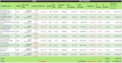 ঢাকা স্টক এক্সচেঞ্জে (ডিএসই) গত সপ্তাহে (৩০ জানুয়ারি থেকে ৩ ফেব্রুয়ারি) বাজার মূলধর কমেছে প্রায় ৭ হাজার কোটি টাকা।