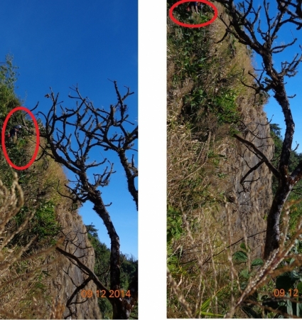 যোগীর খাড়া দেয়ালের পাশ বেয়ে উপরে উঠছে নওশাদ( ছবিতে লাল দাগ দিয়ে চিন্হিত করা )