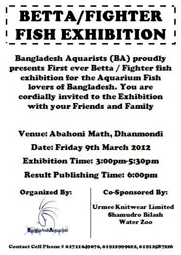ফাইটার/বেটা ফিশ প্রদর্শনী বাংলাদেশে এই প্রথম আয়োজন করতে যাচ্ছে বাংলাদেশ আকুয়ারিস্ট (Bangladesh Aquarist)....