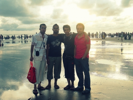 গোসল করে কিছুক্ষণ বিশ্রাম নিয়ে বিকাল ৫ টায় সমুদ্র সৈকতে চলে যাই- পৃথিবীর সবচেয়ে বড় সমুদ্রসৈকত (১২০ কি মি)। আমার এই প্রথম কক্সবাজার আসা। ঈদের ছুটিতে সমুদ্রসৈকত লোকে লোকারণ্য। অনেক ভীড় থাকায় তেমন ভালো লাগলো না, সৈকতও প্রচন্ড কোলাহল আর ময়লা-আবর্জনায় বিরক্তিকর লাগলো। তাও সূর্য ডোবা দেখতে দেখতে আর ছবি তুলতে তুলতে কখন যেন সময় পেরিয়ে গেল। সন্ধ্যা নামার পর সৈকতে কিছুক্ষণ হাঁটলাম। তখন কিছুটা সুনসান হয়ে এলে ভালো লাগলো