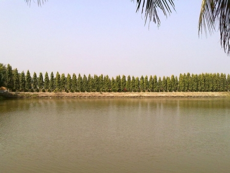 মন্টুসাহেবের বাগানবাড়ি-লেকের ধারে সারিবদ্ধ গাছের ছবি