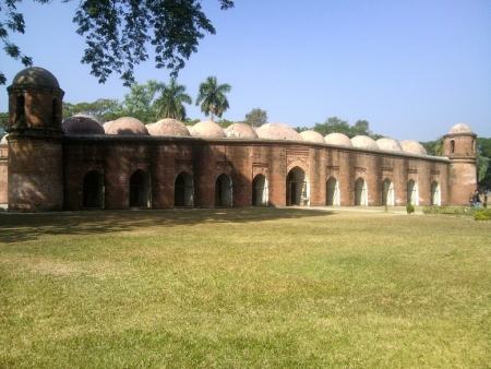 দশ টাকা করে টিকেট। মসজিদ ঘুরে দেখি। হযরত খান জাহান (র) এই মসজিদটি তৈরী করেন। যদিও নাম ষাট গম্বুজ, এতে মোট ৮১ টি গম্বুজ আছে। মসজিদের সাথে একটা জাদুঘরও আছে, নাম বাগেরহাট জাদুঘর- তবে তা বন্ধ থাকায় দেখতে পারিনি। এ বিশাল মসজিদের চারদিকে প্রাচীর ৮ফুট চওড়া এবং এর চার কোনে চারটি মিনার আছে। দক্ষিণ দিকের মিনারের শীর্ষে কুঠিরের নাম রোশনাই কুঠির এবং এ মিনারে উপরে উঠার সিড়ি আছে। মসজিদের পশ্চিম দিকে প্রধান মেহরাবের পাশে একটি দরজাসহ মোট ২৬টি দরজা আছে।