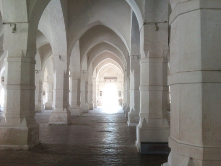অভ্যন্তরে পিলারগুলো সংরক্ষণের জন্য ইট দিয়ে ঢাকা- একটামাত্র খোলা দর্শনার্থীদের দেখার জন্য। বড় বড় পাথর বসিয়ে পিলারগুলো তৈরী। পরে রাস্তার অপর পাশে সিঙ্গাইর মসজিদটাও দেখে আসি। ষাটগম্বুজ মসজিদের দক্ষিণ-পূর্ব কোনে মধ্যযুগীয় এই মসজিদটি অবস্থিত। এটি একগম্বুজ বিশিষ্ট একটি মসজিদ।