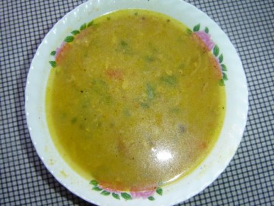 (পানির পরিমাণ নির্ভর করে ডাল কতটা ঘন করতে চান, অবশ্য পানি বেশী হলে একটু বেশী সময় ধরে জ্বাল দিলেই ডাল ঘন হবে, বেশী সময় ধরে জ্বাল দিলে ডালের স্বাদটাও ভাল হয়)