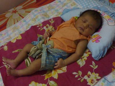 তার ডল-গুলোকে এভাবেই আদর করে ঘুম পাড়ানো হয়। ”সারাহ ঘুমালো, পাড়া জৃড়ালো, বগ্গী এলো দেসে”। আমাক্ওে সে কপালে হাত বুলিয়ে ঘুম পাড়ায়। তখন বলে ”মা ঘুমালো.. .. ..”।