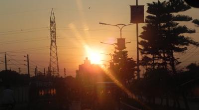 সাতমাথা থেকে তিন মাথার দিকে যাওয়ার পথে শহরের বিল্ডিংগুলো উপর দিয়ে লাল টুকটুক সূর্যের চমৎকার আকাশ