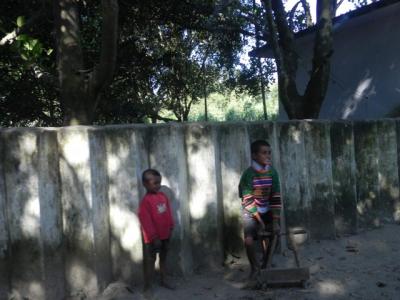 এলাকার ছেলেরা রাস্তায় খেলায় মত্ত। গাড়ী আসায় রাস্তা ছেড়ে দাঁড়িয়েছে