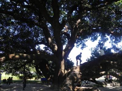 গাছের কান্ড, কেউ কেউ ডাল পালায় উঠছে ছবির পোজ দেয়ার জন্য