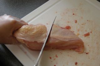 বাজারে সম্পূর্ণ সাইজ করা(নির্দিষ্ট আকৃতি কাটাঁ) পাওয়া যায় । মুরগী কাটার ব্যাপাটা বর্ণনা করা কষ্টকর । তবে মুরগীর পা(যেটাকে রান বলা হয়) তার নিচেরে আঙ্গুল গুলি । কেটে ফেলুন । বাজারে শক্ত মাছ ও মাংস কাটার কেচিঁ পাওয়া যায় । না পেলেও সমস্যা নেই । সেইক্ষেত্রে শক্ত একটি তক্তা কিংবা প্লাষ্টিক এর তক্তা নিবেন (বাজরে মাংস কিংবা সবজি কাটার জন্য তক্তা পাওয়া যায়) । এরপর এর নিচে একটি পাতলা কাপড় বিছিয়ে দিন কিংবা পাতলা স্পঞ্জ জাতীয় কাপড় কিংবা রুমাল সাইজের রাবার বিছিয়ে নিন । তাহলে তক্তাটি কাটার সময় সহজে নড়বে না । এরপর রান উপরের অংশটুকু যেখান থেকে কাটবেন, সেখানে একটু ছুড়ি দিয়ে দেখুন হাড্ডির জোড়ার নরম জায়গায় পড়েছে কিনা । তাহলে সহজে আলাদা করা যাবে । মনে রাখবেন প্রত্যেক জোড়ার অংশটুকু নরম থাকে ।
