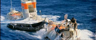নীচের ছবিতে: ডীপ সী কে নামানো হচ্ছে: