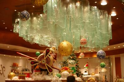 এটি সম্ভবত লাস ভেগাসের সবচেয়ে সম্ভ্রান্ত তিনটি হোটেলের একটি হবে। হোটেলের সামনে যে ফোয়ারাটি আছে তা গানের তালে তালে নাচে। ভেতরের ডেকোরেশন এক কথায় মাইন্ড ব্লোইং - সপ্তবর্ণা ঝাড় বাতিটি লক্ষ্য করুন ( ৪ নং ছবিটি) - এত লাইভলি আর কালারফুল! এই হোটেলের খাবারও অনেক বিখ্যাত। এদের আর এম. জি. এম. গ্র্যান্ডের বুফে ভেগাসের সব চেয়ে বিখ্যাত বুফে। গতবার যখন নিউ ইয়ার'স ইভে ভেগাসে গিয়েছিলাম, তখন ২ ঘন্টা লাইনে দাড়িয়ে থেকেও ওদের বুফেতে ঢুকতে পার নি!