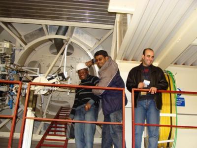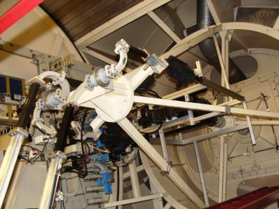 এন্টেনার ভিতরে, ট্রেকিং গিয়ার যার মাধ্যমে এন্টেনা ঘুরে ঘুরে উপগ্রহ ট্রেক করে: