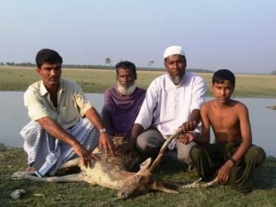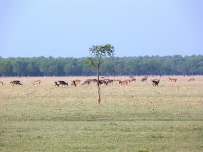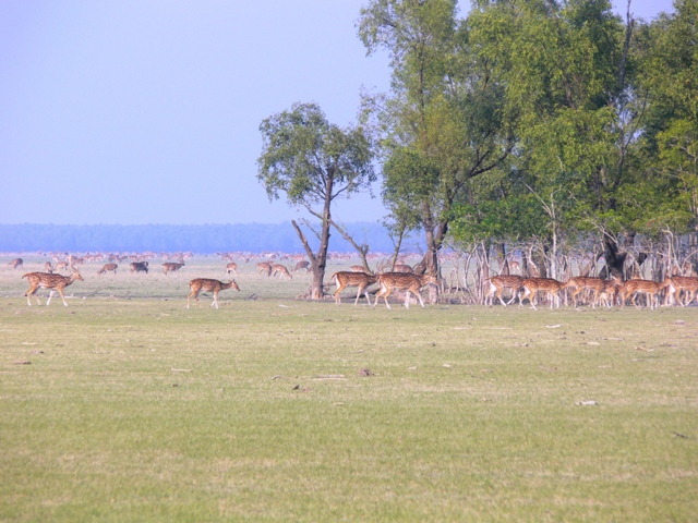 বন বিভাগের নৌকা আরো আছে, কিন্তু মাঝি একজন, যে কিনা পেয়ারা গ্রুপ নিয়ে চলে গেছে। বেশ কিছুক্ষন পর খোকন ভাই বাজার থেকে এক মাঝি নিয়ে হাজির, বল্লো চলেন স্যার রওয়ানা দেই। আমরা ২ জন, সাথে এক পিচ্চি (আমাদের সাথে সাথে ঘুরে ও, আমরা খুসি হয়ে ১০/২০ টাকা দেই, সেন্ট মার্টিনস এর মত "গাইড" কথাটা শেখেনি তখনো) আর খোকন ভাই রওনা দিলাম বিশাল নৌকা নিয়ে, নিজেদের কে বেশ নবাব নবাব মনে হচ্ছিল তখন। খোকন ভাই আমাদের বেশ অনেকগুলি চরে ঘুরালেন। রাজশাহী চিড়িয়াখানাই অনেক হরিন দেখেছিলাম ছোট বেলায়, কিন্তু এত হরিন কখন দেখবো কল্পনাও করিনি। এরি মাঝে আমরা পেয়ারা গ্রুপ কে নবাবি কায়দায় ওভারটেক করে এসেছি, ভাব ধরেছি "হু হু বাবা, আমাদের তো চেনো না...."