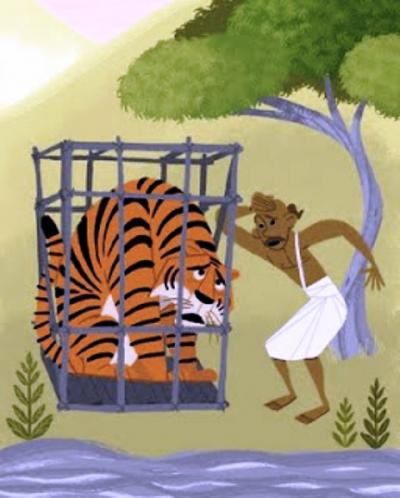 তখন লোকজন যে যেখানে পারে বল্লম, শরকি নিয়ে এসে দূর থেকে খাঁচার ফাঁক দিয়ে বাঘকে খোঁচাতে লাগলো। বড় শিয়াল ভাবলো, এরাই মনে হয় শালা-শালী, আমার সাথে দুষ্টামী করছে, এই ভেবে লাজুক লাজুক হাসতে লাগলো।