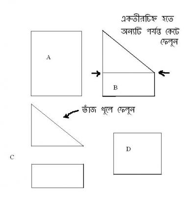 প্রথমে একটি A4 সাইজের কাগজ নিন। একে ছবির মত করে বর্গাকারে কেটে ফেলুন।