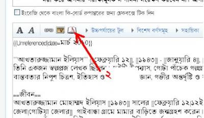 ২. এবার লেখার বাক্সের উপরে সম্পাদনা টুলবারে বইয়ের মত একটা ছবি আছে, সেটাতে ক্লিক করুন।
