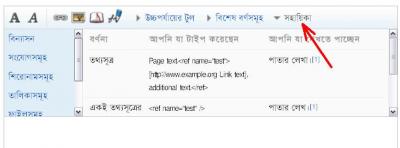 ১. এরপর কোন প্যারার নিচে সেই প্যারাতে যে তথ্য দেওয়া আছে, তার উৎস বা রেফারেন্স দিতে প্যারাটির শেষে মাউসের কারসর রাখুন।