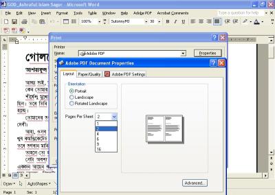 এবার প্রোপারটিজ এ গিয়ে তিনটা অপশন দেখবেন। প্রথমেই আছে লে আউট। পোর্টেট, ল্যান্ডস্কেপ ও প্রতি পেজে কয়টা পৃষ্ঠা রাখতে চান, সিলেক্ট করুন। আমি পোর্টেট ও ২ টা করে পৃষ্ঠা রাখার জন্য বলেছি।