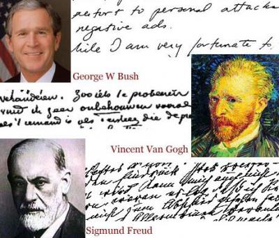 জর্জ ডাব্লিউ বুশ,ভিনসেন্ট ভ্যান গগ ও মিঃ ফ্রয়েড। তিনজন সেলিব্রেটি মানুষের হ্যান্ডরাইটিং।