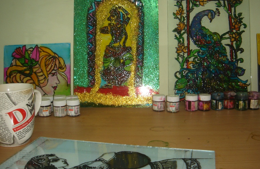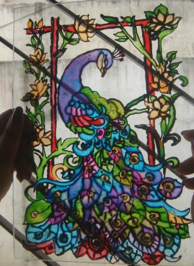 যে কোনো পছন্দসই ছবিটা গ্লাসের নীচে রেখে এঁকে নিতে হবে আউটলাইন দিয়ে। ২৪ ঘন্টা শুকানোর জন্য ওয়েট করতে হবে। আমি অবশ্য দুইঘন্টাও করিনা।