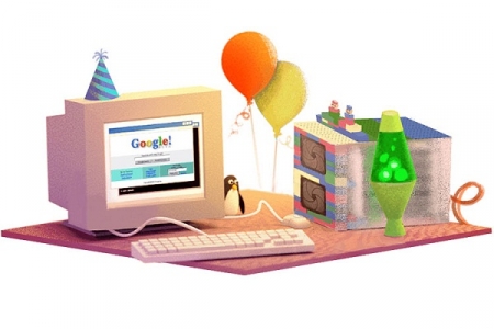 গুগলের ১৭ বছর উদযাপন উপলক্ষে গুগল ডুডল করা হয়েছে একটি সাদা সিআরটি কম্পিউটার মনিটর, লাভা ল্যাম্প এবং তার পাশে ছোট একটি পেঙ্গুইনের পুতুল। মনিটরে দেখা যাচ্ছে গুগলের হোমপেজ। আর এভাবেই নিজেদের উপস্থিতি জানান দিচ্ছে গুগল।
