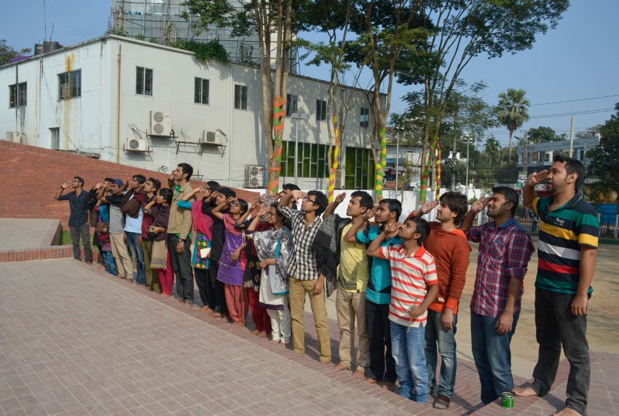 ভাষা শহীদদের প্রতি সম্মান জানিয়ে স্যালুট। পরে সবাই মিলে গাইলাম জাতীয় সংগীত- আমার সোনার বাংলা আমি তোমায় ভালবাসি