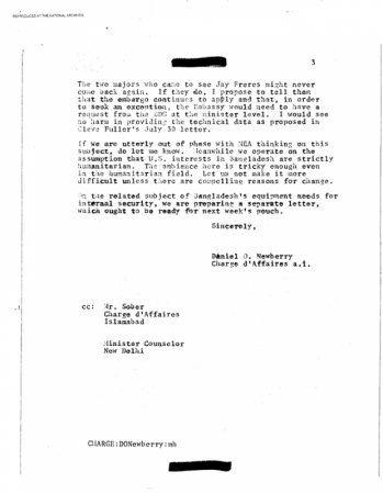 নিউবেরীর ২৭ আগস্ট ,১৯৭৩ এর টেলিগ্রামটি ডিক্লাসিফায়েড ডকুমেন্ট হিসেবে অনলাইনেই পাওয়া যায়।