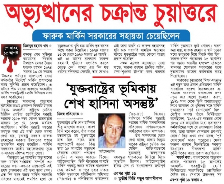 আগস্ট ১১ , ২০০৯ প্রথম আলো , মুজিব হত্যা বিষয়ে মিজানুর রহমানের রিপোর্ট :
