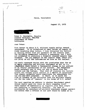 নিউবেরীর সেই তথাকথিত অতি গোপনীয় অস্ত্র ক্রয় সংক্রান্ত রিপোর্টগুলোর ১ টি [ আগস্ট ২৭ , ১৯৭৪ ] দেখুন নীচে :