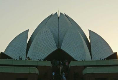 সন্ধ্যাবেলা ফ্লাডলাইটের আলোতে লোটাস মন্দিরের সৌন্দর্য অনেক বৃদ্ধি পায়।