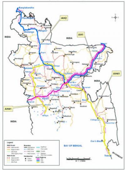 রুট এএইচ ৪১ মংলা-যশোর-হাটিকুমরুল-ঢাকা-কাঁচপুর-চট্টগ্রাম-কক্সবাজার-টেকনাফ->মিয়ানমার এশিয়া এবং ইউরোপীয় নেটওয়ার্ক!!
