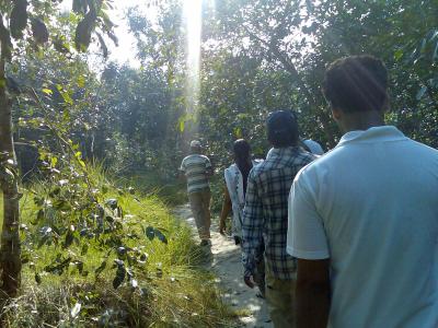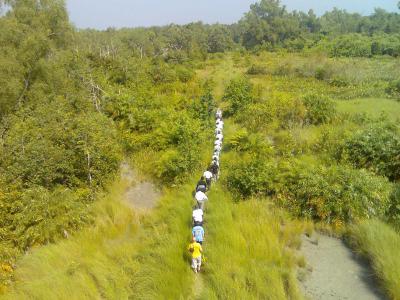 না সৈকতটা খুব কাছেনা। প্রায় ২ কিমি বাঘের ভয়ে ভয়ে হাঁটতে হয়।
