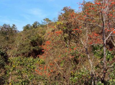 রক্তলাল ফুটন্ত ফুলসহ গাছ। অনেকের কাছেই পরিচিত এই গাছটি।