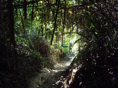 সামনে যেন একটি ছোট্ট সুরঙ্গ পথ। ঝোপঝাপ হেলে পড়ে এই পথটি এরকম আকার ধারণ করেছে।