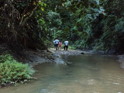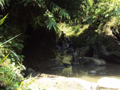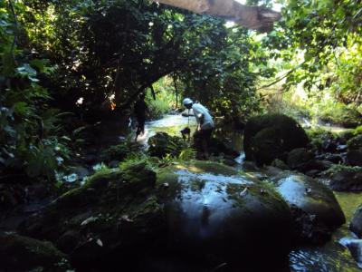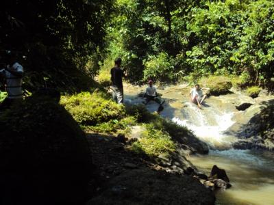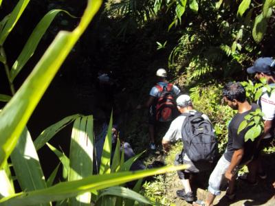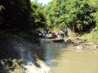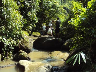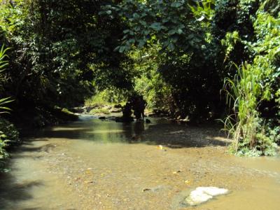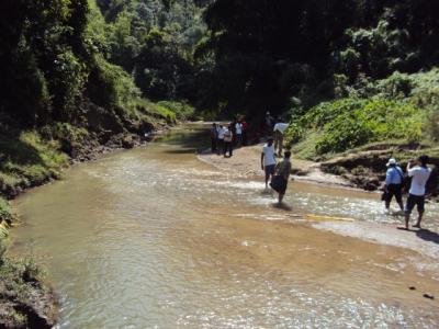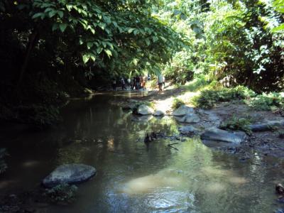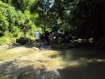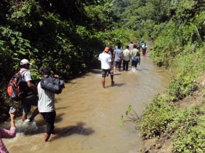 এবার নামতে হবে প্রথম ছড়ায়। অনেকে পাড় হয়েছে। বাকীরা পাড় হচ্ছে।