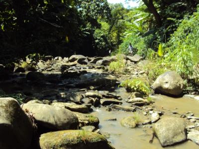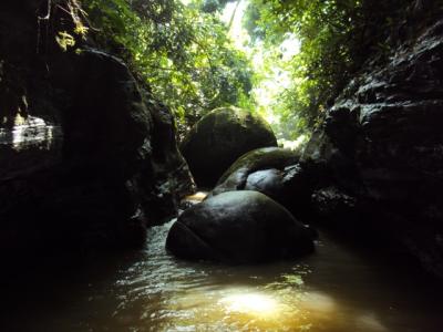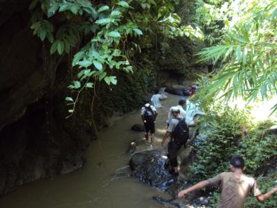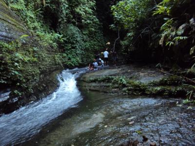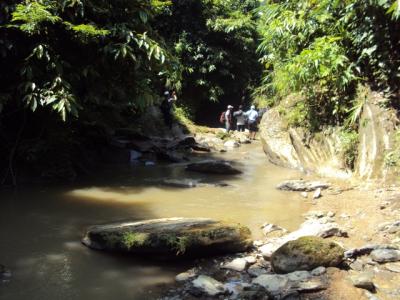 এবার তৈদু ছড়া ধরে হাঁটা শুরু করলাম। কখনও হাঁটু পানি দিয়ে হাঁটতে হচ্ছে। কখনও বা পানি বেশী থাকায় ডানে বায়ে উপরে দিয়ে যেতে হচ্ছে।