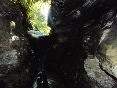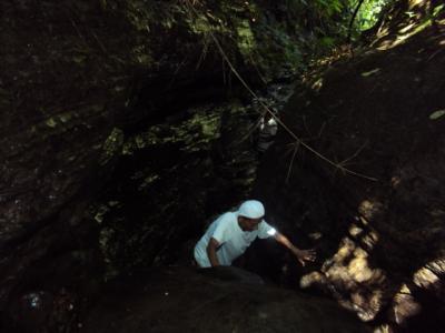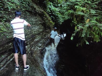 উপরে উঠেই গুহার মত অংশ চোখে পড়লো। নিচে এক কোমড় পানি। দুই সাইডে পা ছড়িয়ে উপরে উঠতে হলো।