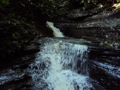 যাক শেষ পর্যন্ত ৩ ঘন্টায় ৫ কিমি পথ অতিক্রম করে প্রথম ঝর্ণায় এসে পৌঁছেছি। এটার নাম তৈদু ছড়া ঝর্ণা। আনুমানিক ৬০ ফুট উঁচু।